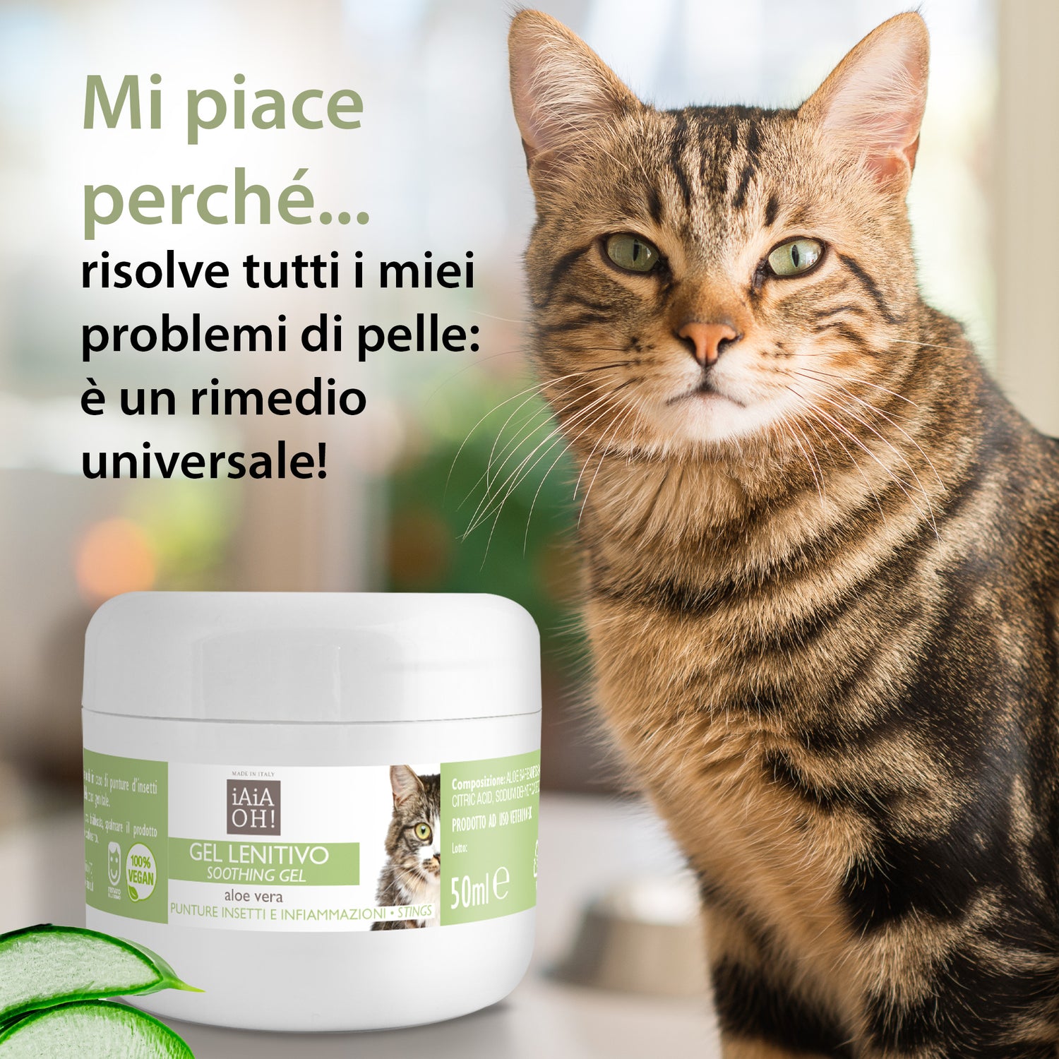 Il Gel Lenitivo all’Aloe Vera è un rimedio universale ideale per alleviare pruriti, arrossamenti ed irritazioni cutanee nei gatti. Grazie alle proprietà rigeneranti e rinfrescanti dell’Aloe, questo gel è perfetto per trattare punture d’insetto, infiammazioni e piccole ferite. Sicuro e di facile applicazione, è adatto a tutte le parti del corpo, compresa la zona ano-genitale. Inoltre, è efficace anche per lenire irritazioni orali, garantendo un’azione astringente e cicatrizzante. Un prodotto indispensabile per la cura quotidiana del tuo gatto, qualunque sia la sua razza.