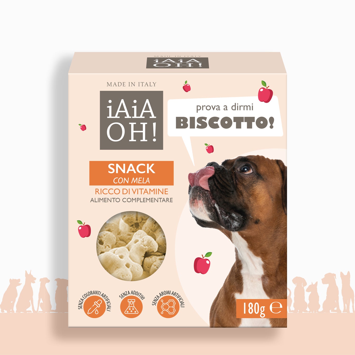 The natural sweetness of the apple makes the biscuits particularly appetizing, while the animal-free formulation makes them easy to digest. The small bone shape is perfect for dogs of all sizes and the right crunchiness helps to keep teeth clean. Packaged in a protective atmosphere, they have a long shelf life without the use of artificial preservatives.