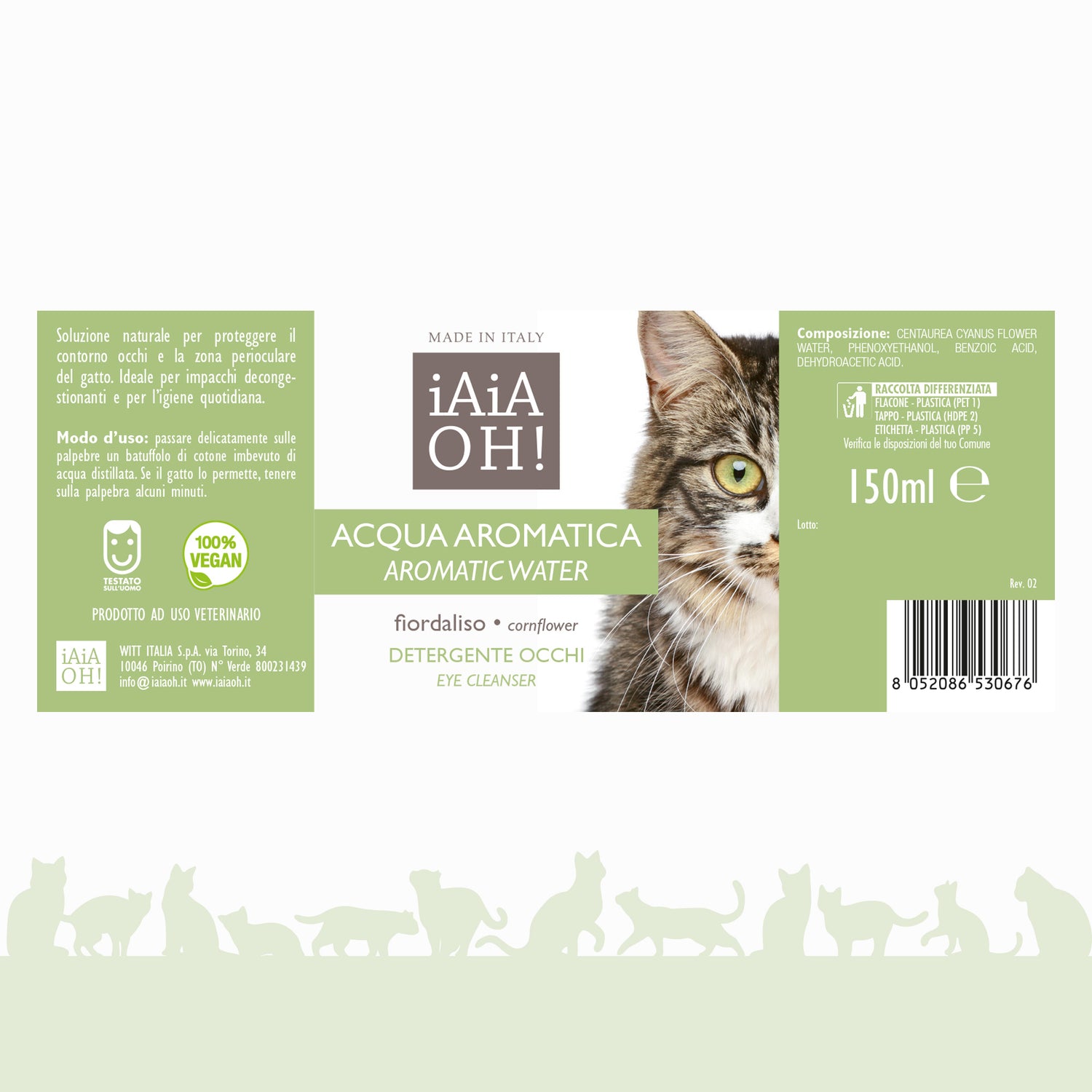 Acqua Aromatica al Fiordaliso 150 ml è una soluzione naturale e delicata che deterge e protegge il contorno occhi del gatto. Grazie alle sue proprietà decongestionanti e lenitive, calma arrossamenti e irritazioni dovute a vento, polvere o freddo. Ideale per la pulizia quotidiana, aiuta a ridurre la lacrimazione e le macchie scure agli angoli degli occhi. Adatto a tutte le razze, può essere usato anche per impacchi decongestionanti.